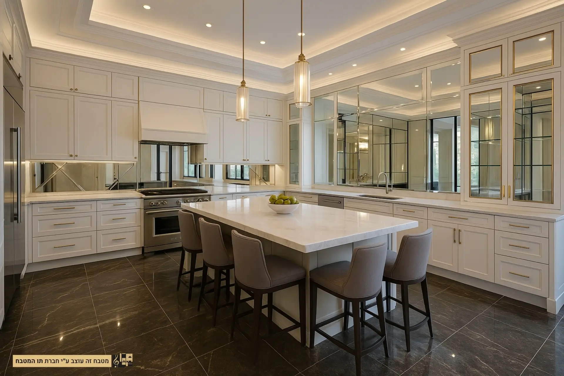 מטבח יוקרתי עם שילוב מראות