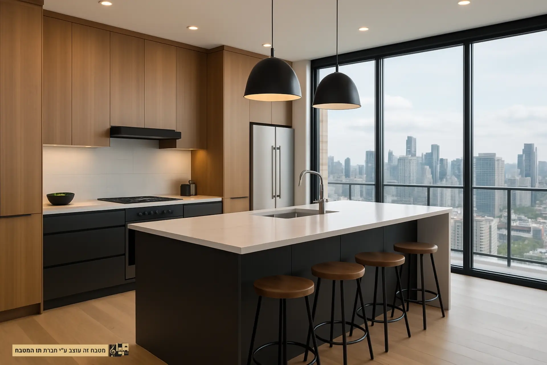 מטבח מודרני בפנטהאוז בשילוב עץ טבעי