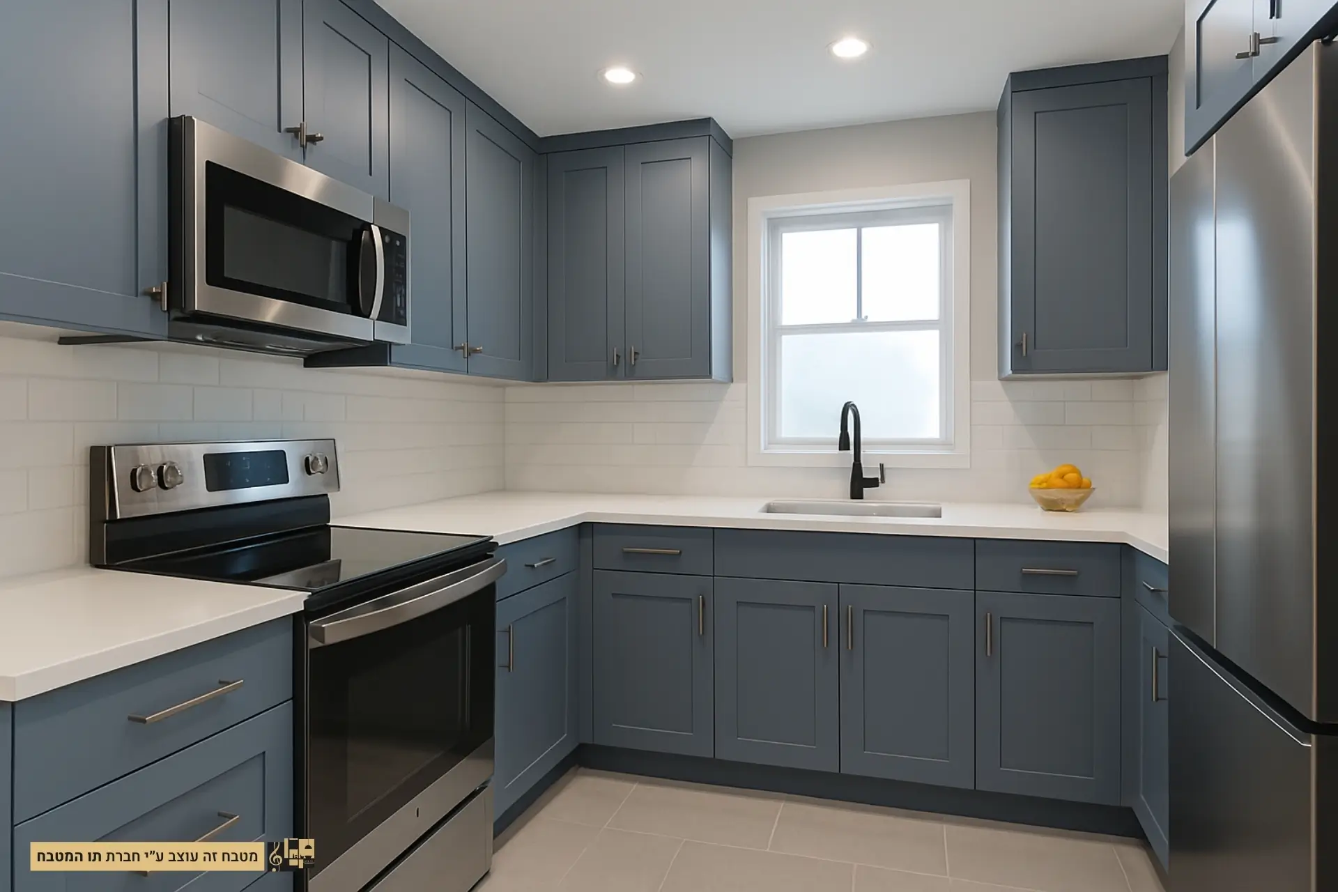 מטבח קטן בצבעי כחול-אפור