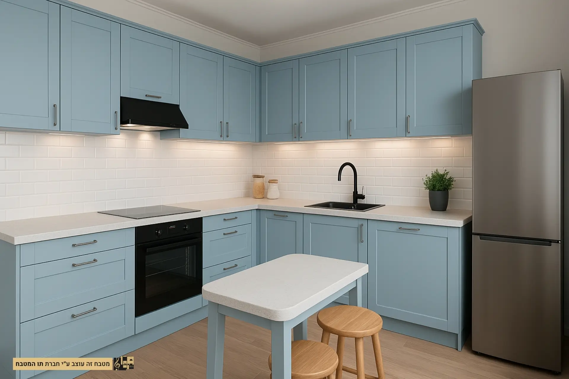 מטבח תכלת סקנדינבי עם טאץ’ מודרני