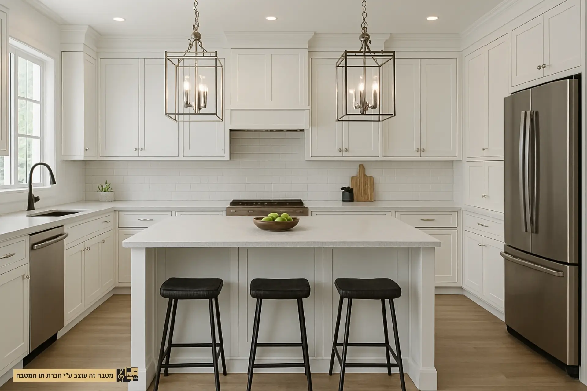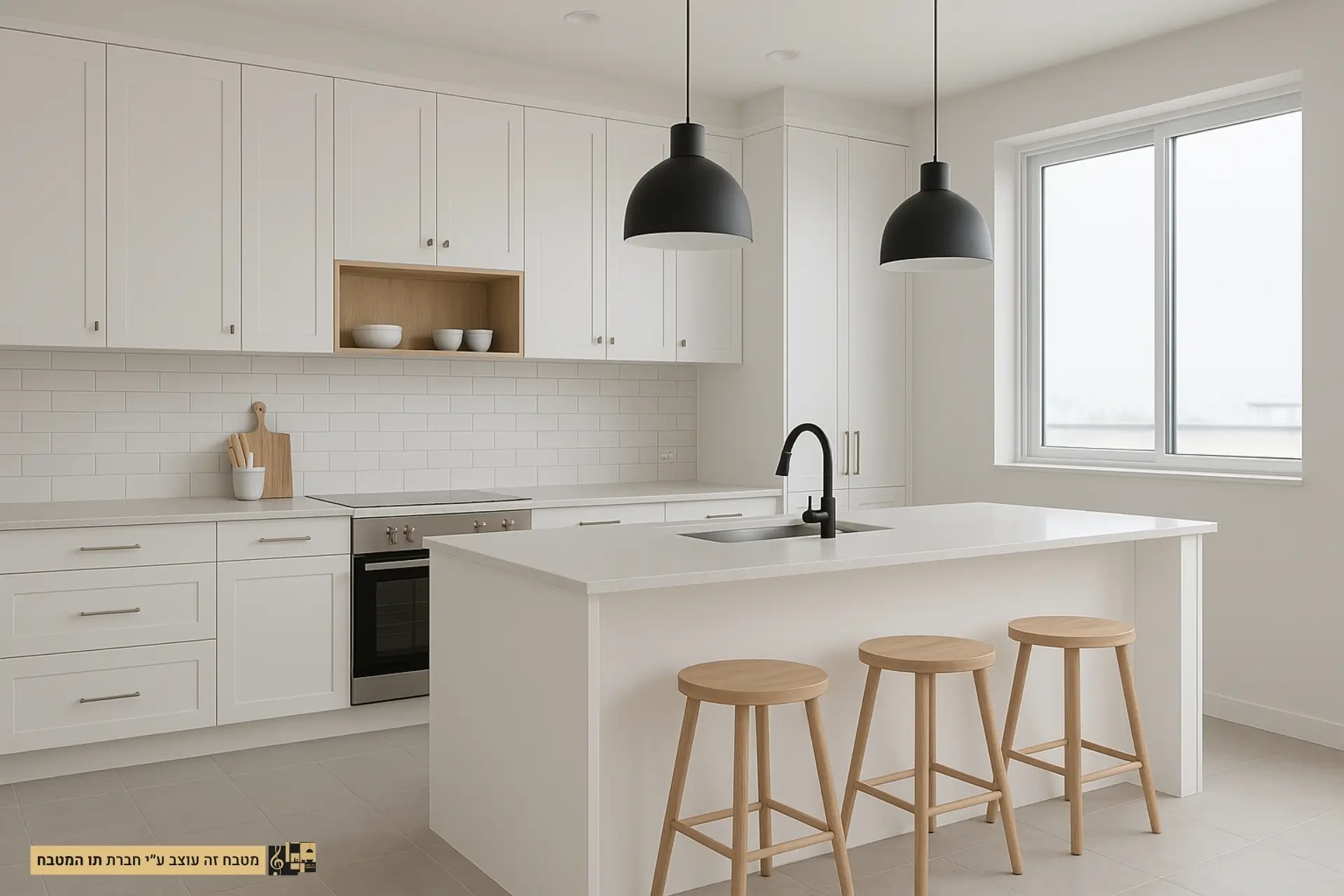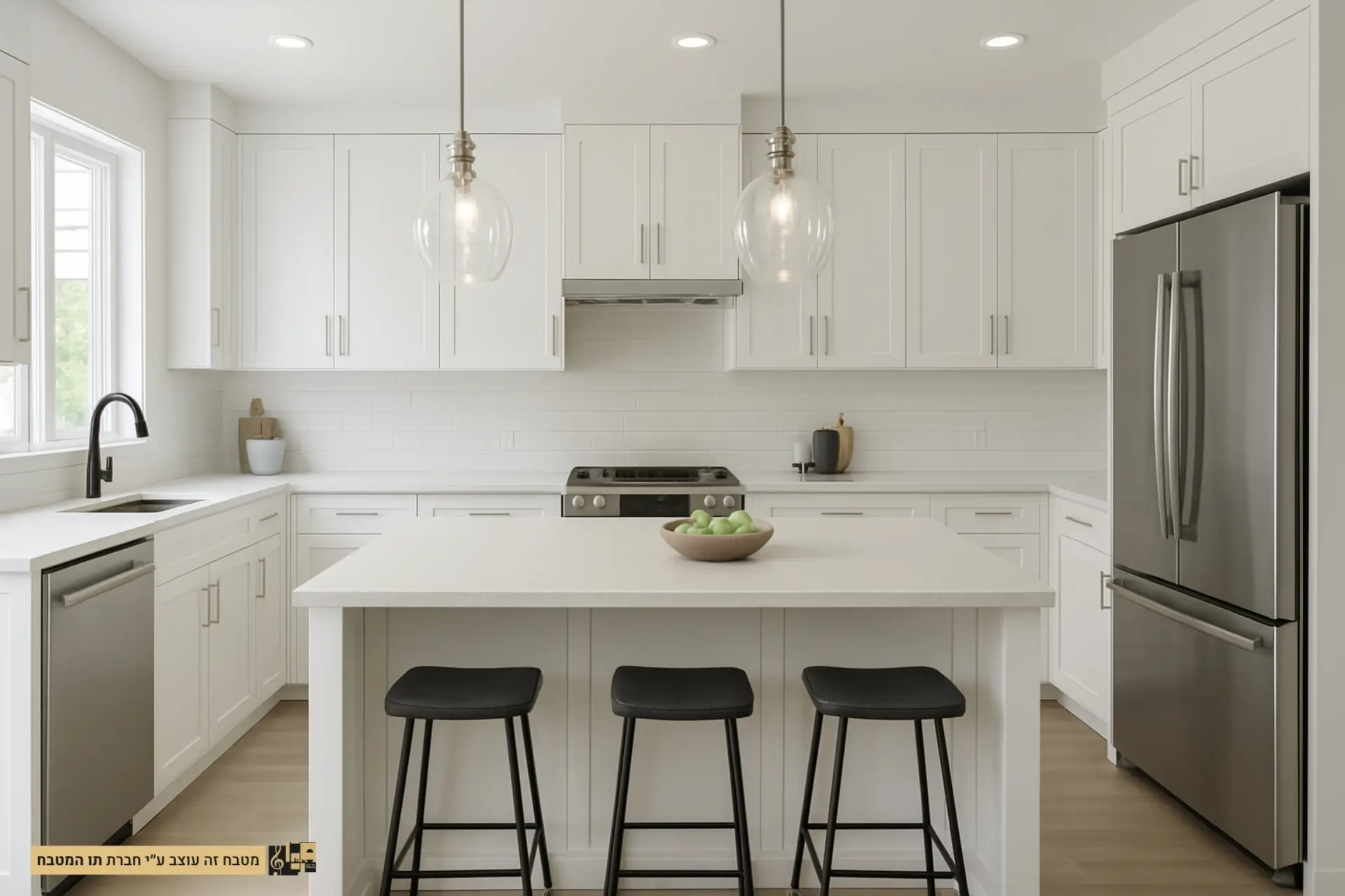 - תאורה: שימוש בתאורה חמה וממוקדת מעל משטחי העבודה ובמרכז המטבח, יחד עם גופי תאורה מעוצבים שידגישו את האסתטיקה הלבנה.